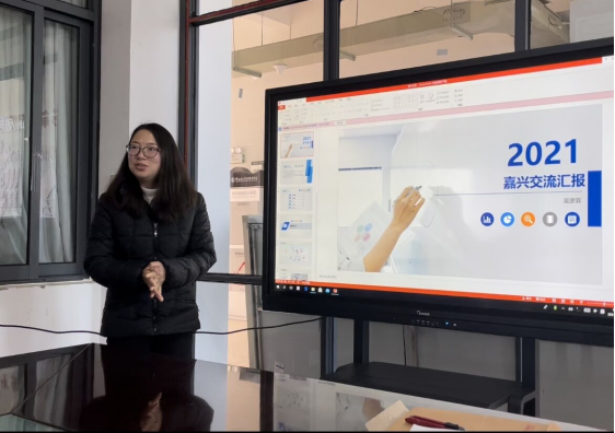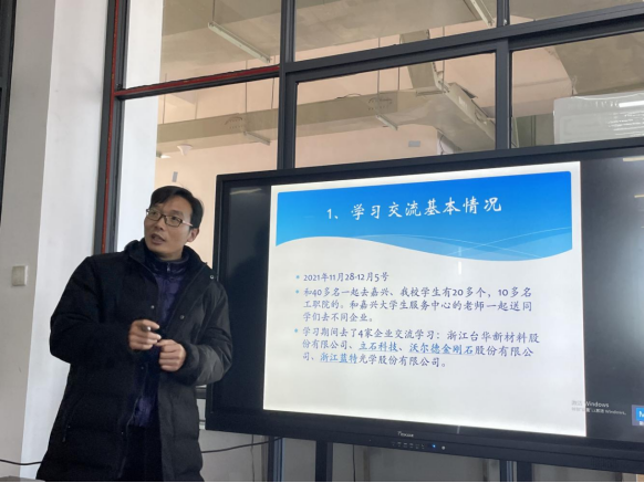 接下来,刘艳伟老师从学习交流基本情况、个人收获和感悟、意见及建议等3个方面进行了分享。他结合自身体会,以幽默风趣的语言,向大家分享了本次学习的感悟。一是长三角、珠三角经济发达地区急需人才;二是学院员工适应能力较强,均得到企业的肯定与赞美;三是学院应在嘉兴建立长期的院企合作制,为员工拓宽就业渠道。