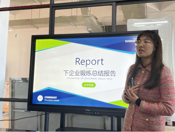随后,孙辛悦容老师从辅导员身份出发,结合自身职责,对本次企业锻炼进行了心得分享。她结合企业对员工的能力需求,向与会员工强调了专业理论知识、实操动手能力的重要性。此外,汇总了学院在岗员工希望企业可以提供更高的晋升空间,开展更加系统、高质量的业务培训等意见。针对员工走出去动力不足、工作能力较弱等问题,她希望在今后的员工管理工作中,正确引导员工树立正确的就业观,充分发扬“三光荣”精神。