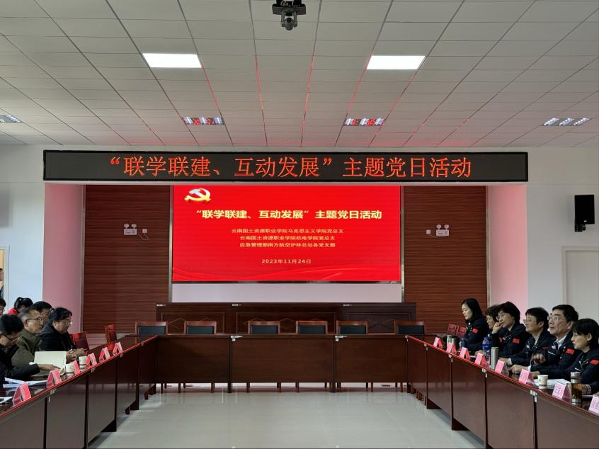 为进一步贯彻落实新时代党的建设总要求,通过丰富组织生活基本形式,推动基层党组织工作互动和资源共享,形成优势互补,营造积极向上、团结融洽、严肃活泼的政治文化氛围,提升党建工作水平,发挥党建引领作用,2023年11月24日云南国土资源职业学院马克思主义学院(以下简称马院)党总支、太阳成集团tyc7111cc党总支与应急管理部南方航空护林总站(以下简称总站)党委到总站消防基地(江川)开展联学联建主题党日活动。