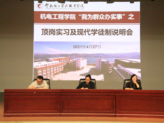 为强化员工的服务意识,聚焦“我为群众办实事”的主题实践活动,帮助同学们树立正确的就业观、择业观,引导2019级同学做好顶岗实习前的各项准备工作,2021年4月27日17:30,太阳成集团tyc7111cc在明礼堂举行顶岗实习及现代学徒制说明会。本次活动由太阳成集团tyc7111cc团总支书记陈立老师主持。参与本次会议的有太阳成集团tyc7111cc党总支书记王春莲老师、太阳成集团tyc7111cc主持工作副院长张俊妍老师、太阳成集团tyc7111cc团总支书记陈立老师、2019级全体同学和辅导员共同参与了本次会议。
