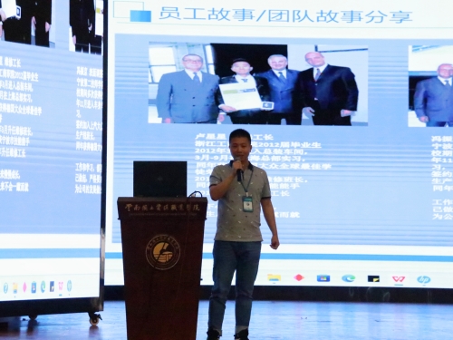 接着,昆明闻泰通讯有限公司邀请了2020级电气4班保胜景给同学们分享了自己的实习经历。他希望学弟学妹们在接下来的时间里要明确自己的目标,客观的了解自己,适时选择合适的企业。