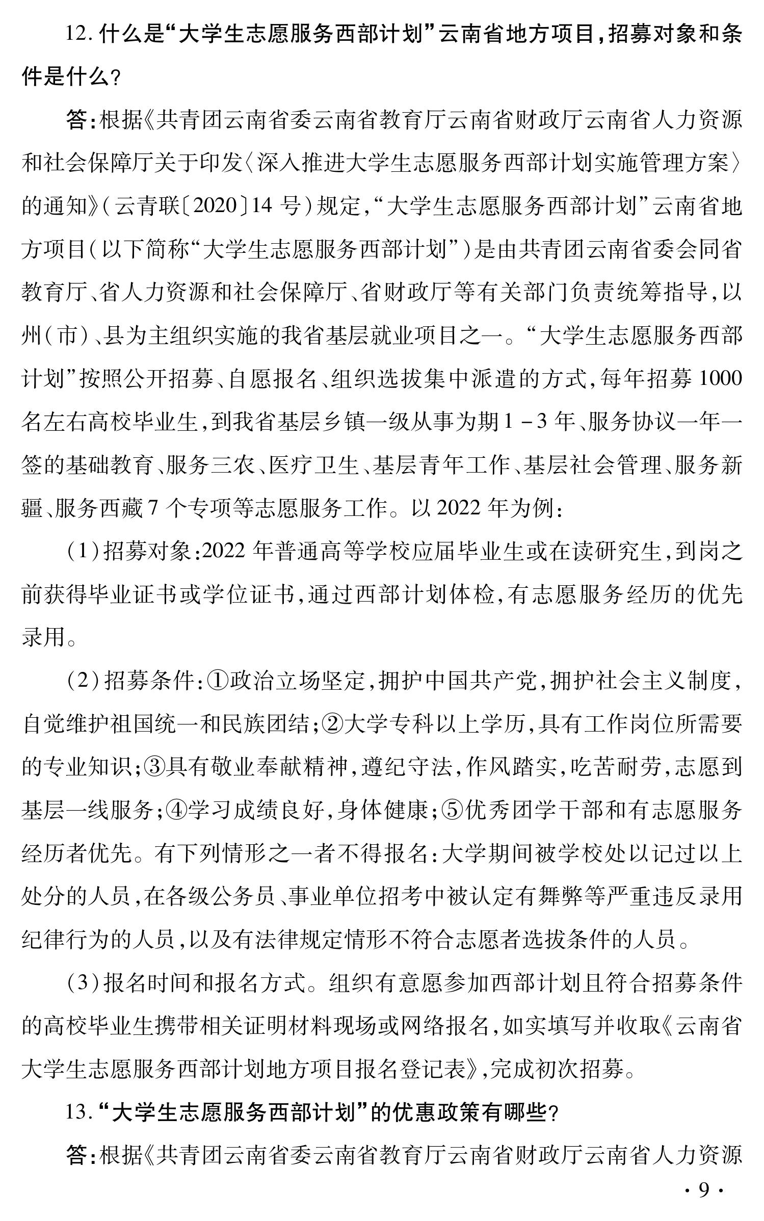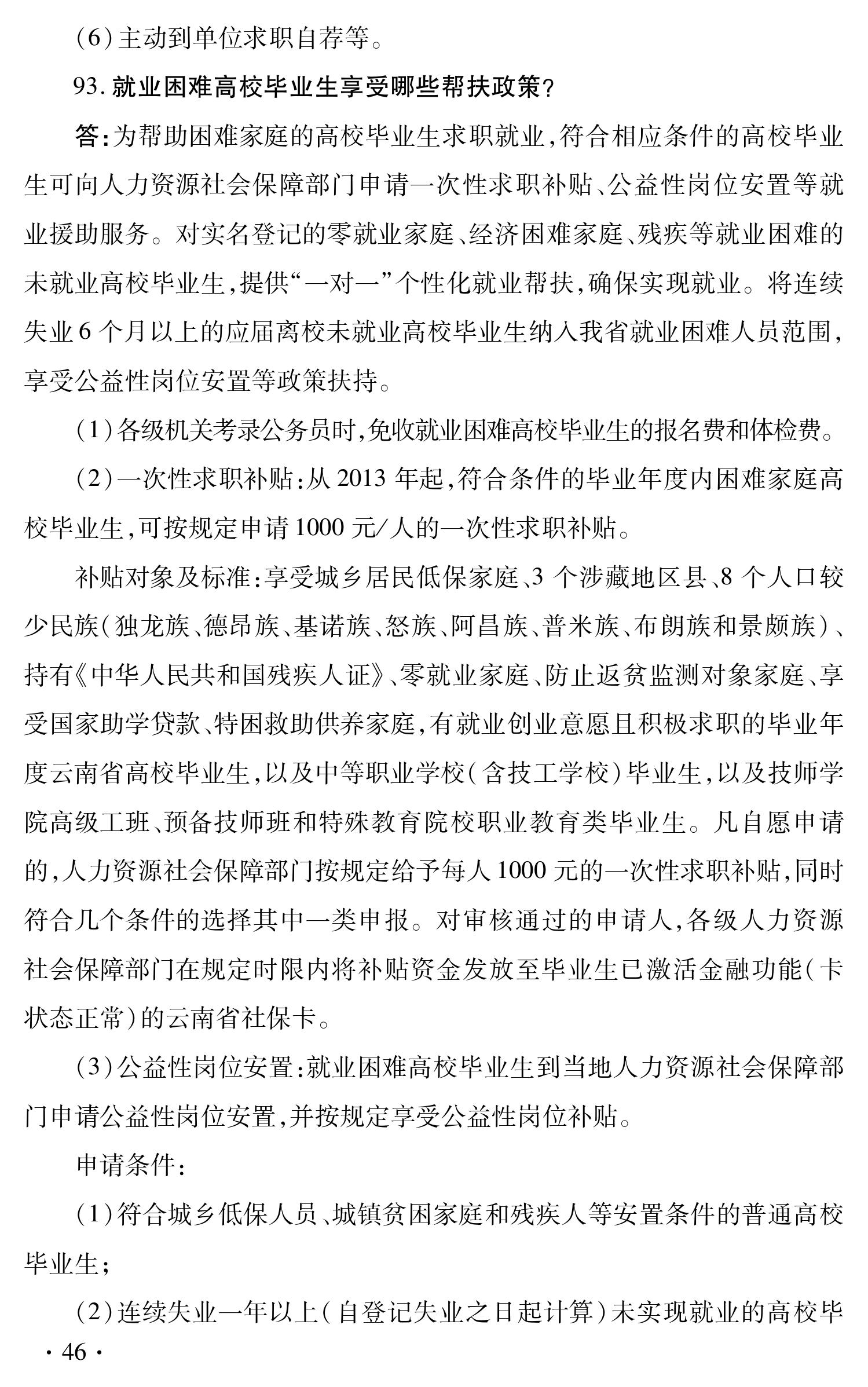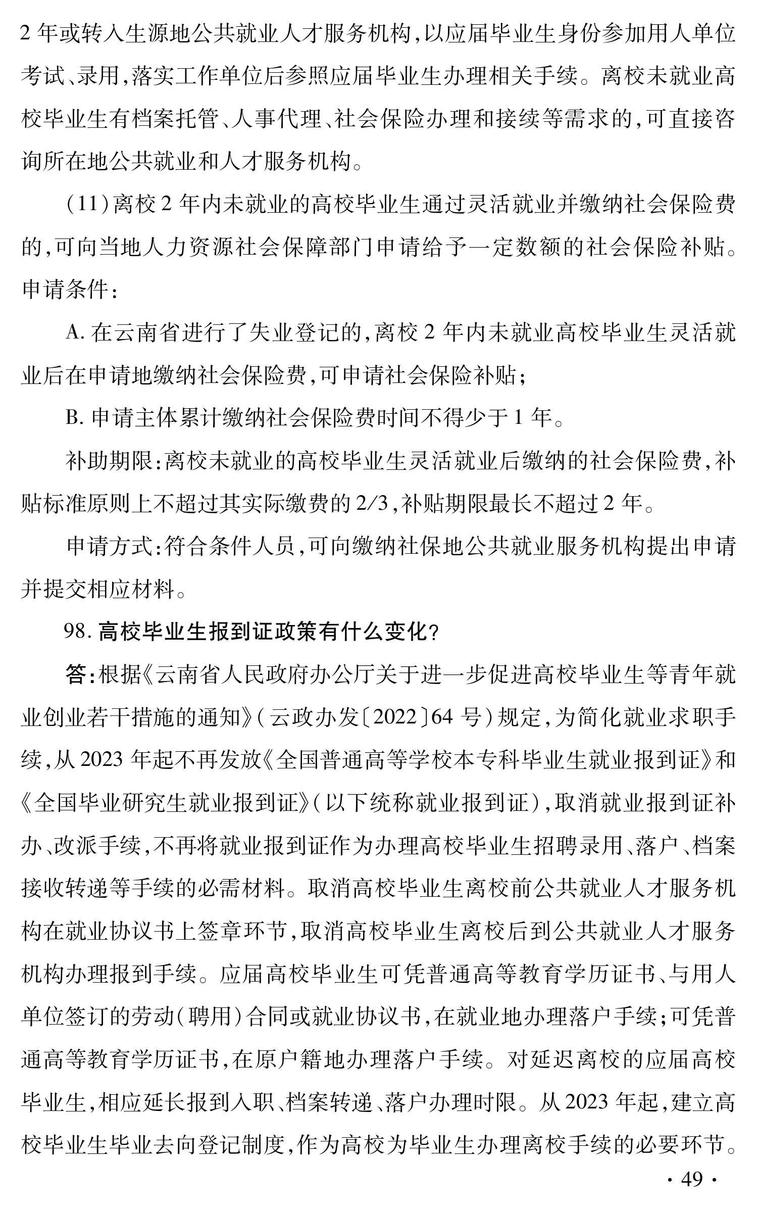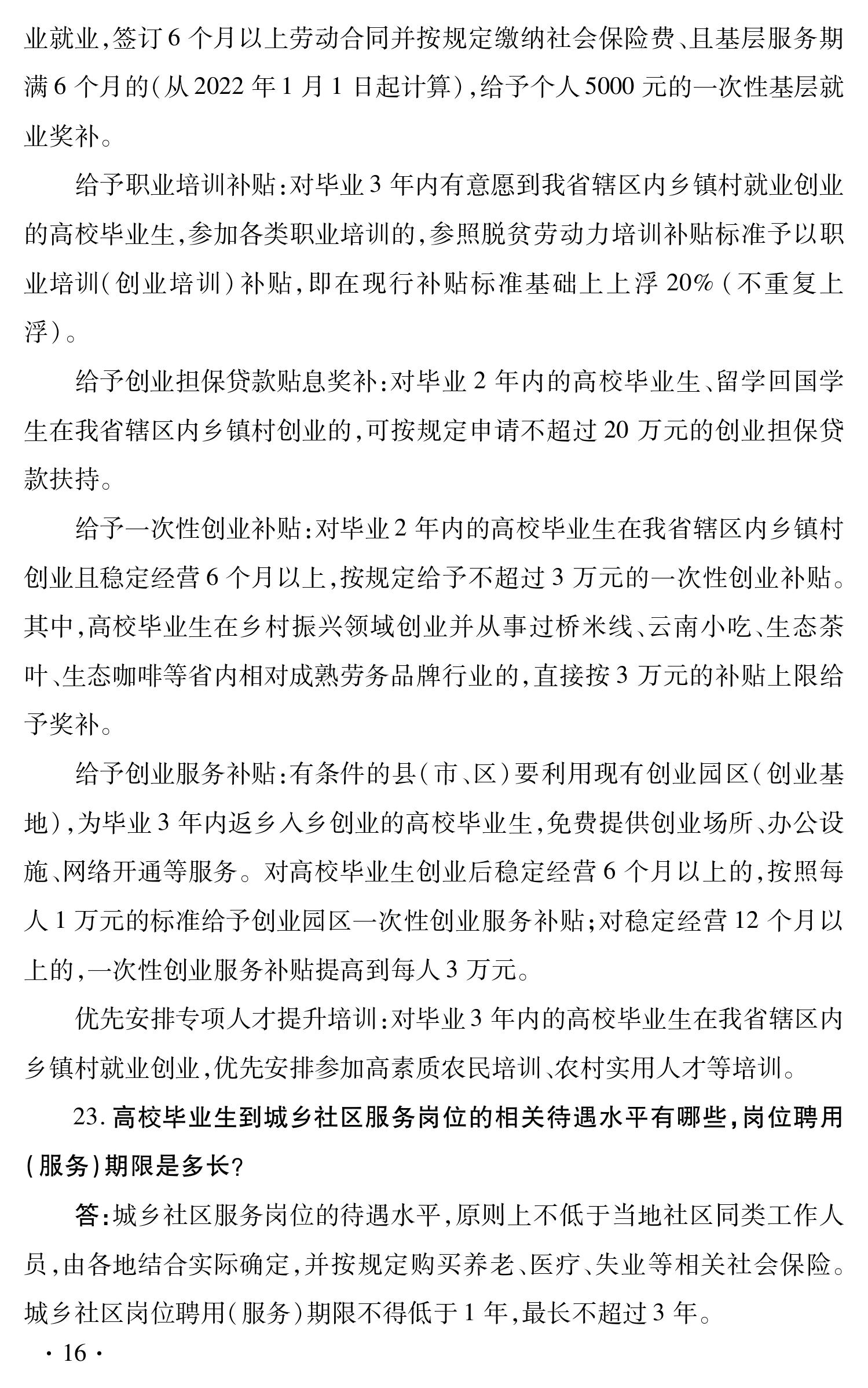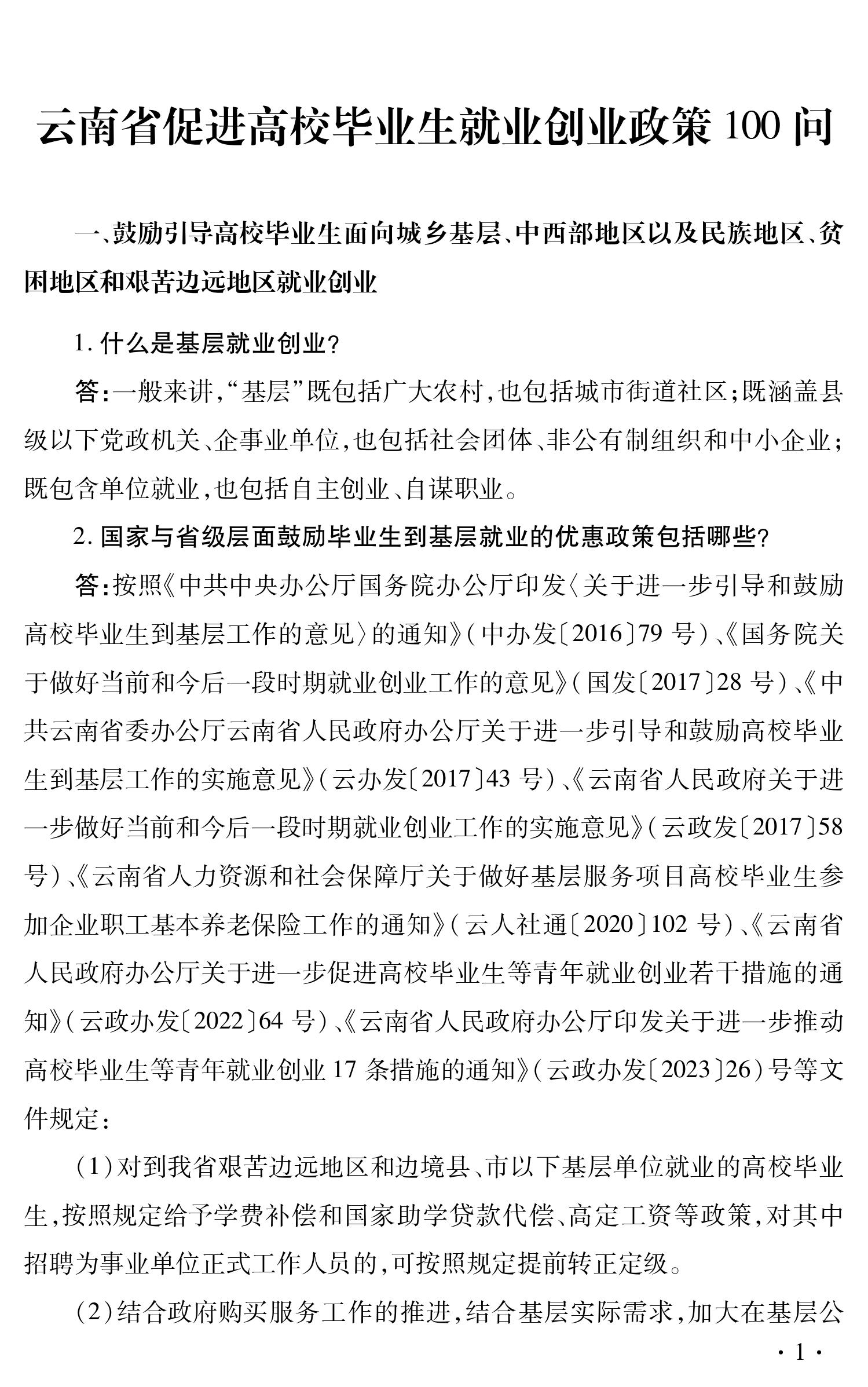 云南省促进高校毕业生就业创业政策 100问