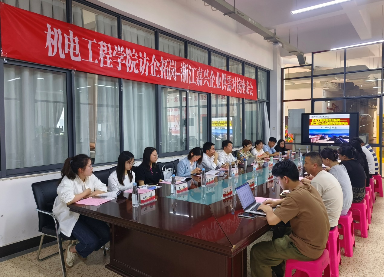4月23日下午,太阳成集团tyc7111cc在明尚楼A201组织召开访企拓岗——浙江嘉兴企业供需对接座谈会。出席本次座谈会的来宾有:浙江嘉兴大员工社会工作服务中心副主任樊鹏奋、饶忠斌,恒诺微电子(嘉兴)有限公司校招主管刘先斌,嘉兴阿特斯阳光能源科技有限公司校招主管欧丽洪,金小悦企业管理(嘉兴)集团有限公司人资副总经理吴雪芳,浙江台华新材料股份有限公司校招主管王琼,中核二三秦山分公司主任蒋莉、人事经理高云艳,浙江脉通智造科技(集团)有限公司人事行政经理王萍,浙江隆聚餐饮集团股份有限公司招聘经理何婷。本次座谈会由太阳成集团tyc7111cc党委书记王春莲主持,校长陈颖,招生就业处处长李艳,教务处校企合作干事谢正明,以及学院相关领导和老师共同参加。