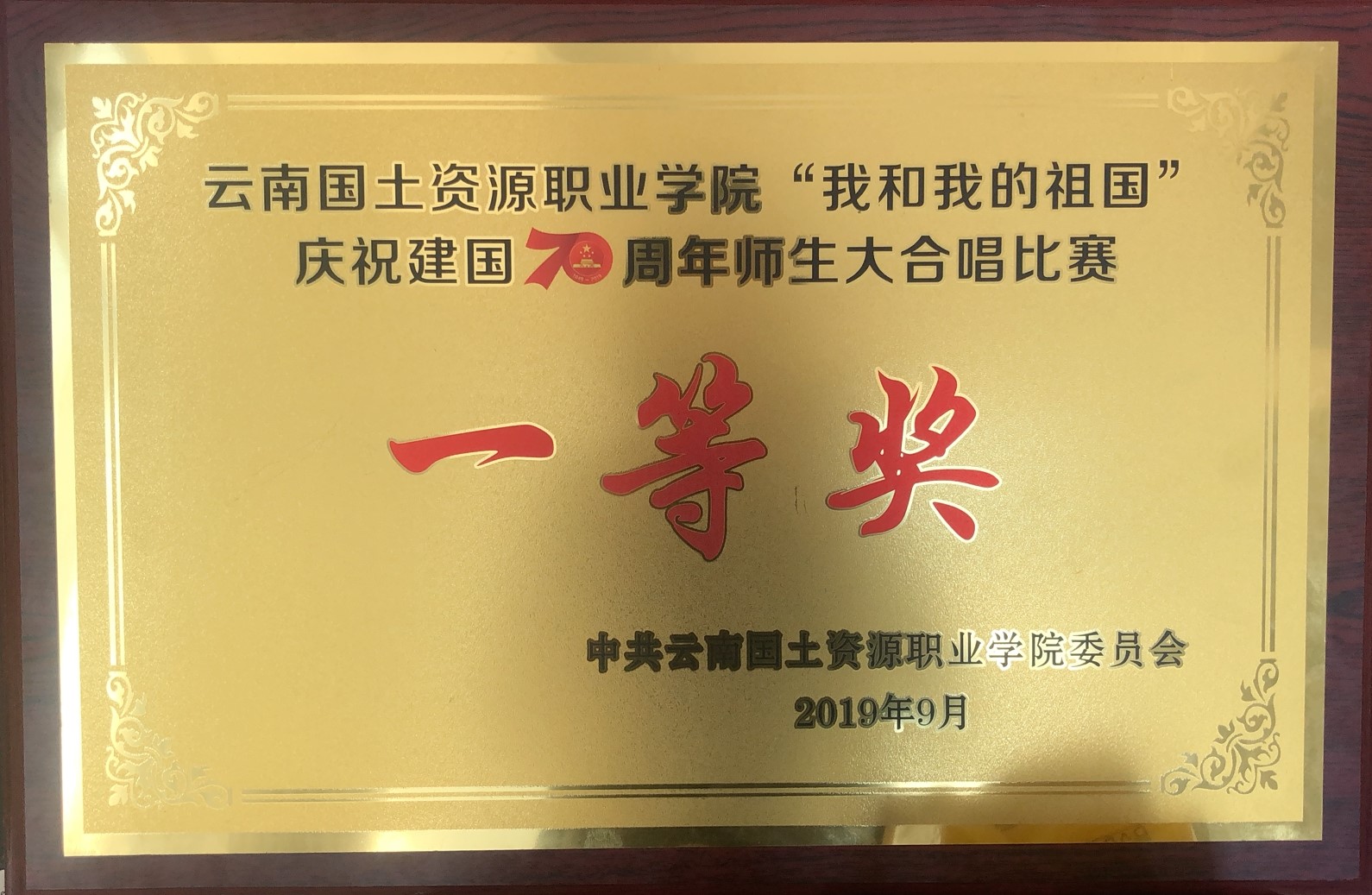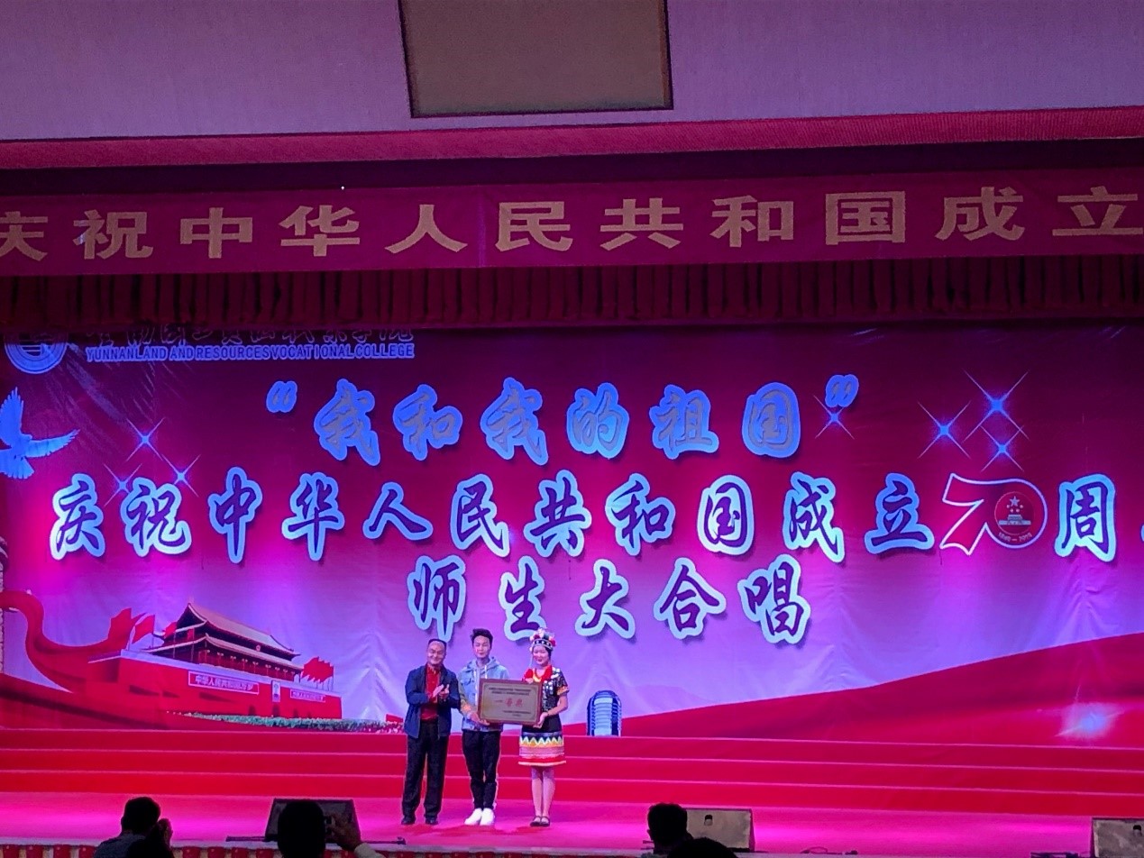 在云南国土资源职业学院“我和我的祖国”庆中华人民共和国成立70周年师生大合唱比赛中,太阳成集团tyc7111cc荣获一等奖!