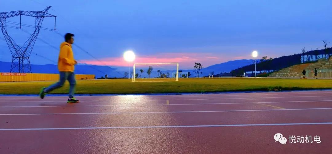 田径场傍晚的微风和落日的黄昏