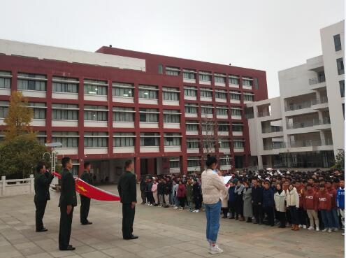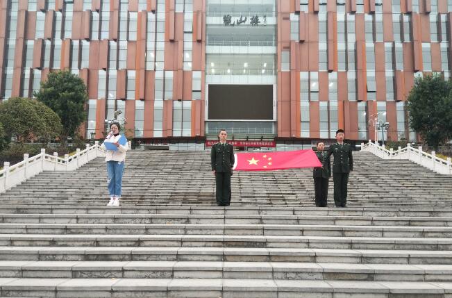 此次活动分为四项。第一项,由主持人介绍此次活动的主要目的,使我们感受到民族精神的气魄所在,意义所在。第二项,迎国旗,全体成员行注目礼。四名身着军装的员工手持国旗四角,踢正步迈向广场中央。鲜红的五星红旗随风飘动,时刻提醒着我们勿忘国耻,不忘初心。第三项,全体师生奏唱国歌。铿锵有力的歌声回荡在整个国土广场,凛冽的寒风中,大家气势昂扬,唱出了机电莘莘学子的爱国热情,也唱出了国土人的爱国情怀。第四项,由18级安管专业杨婕同学进行了精彩的演讲,希望大家可以把握当下,敬仰国旗,热爱我们身在的国家。
