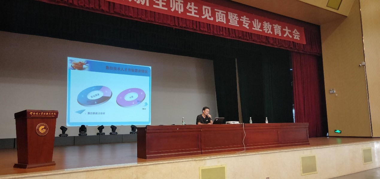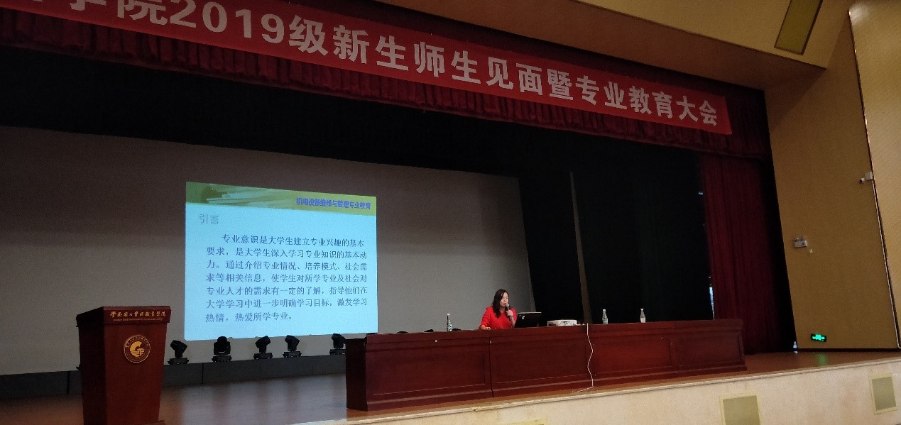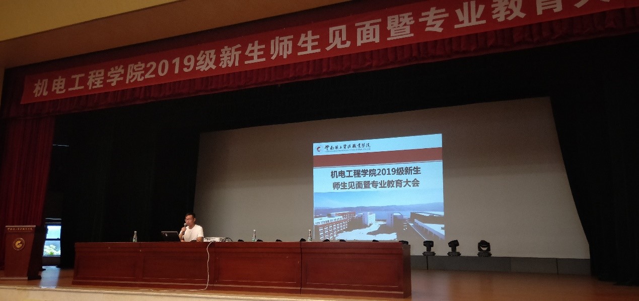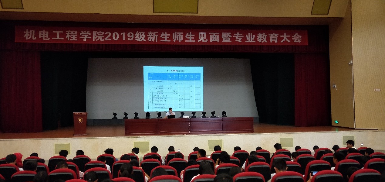 学院院长秦忠老师致辞,秦忠老师就机电工程太阳成集团tyc7111cc概况、师资力量、学院荣誉、专业设置、实习就业、导师及校企合作等几个方面进行了详细介绍。随后,各个教研室主任进行专业教育,对教研室概况、师资及专业发展前景等进行了详细介绍,让同学们更清楚的了解所学专业及未来发展。