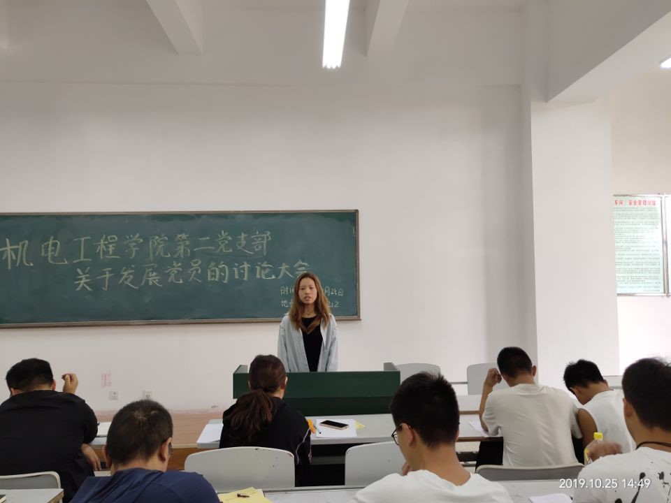 会议讨论了关于接收陈阿华、杨立明、施雨辰等10名同志为中共预备党员的问题。会议伊始,十名同志分别宣读了入党志愿书,就自己对党的认识、入党动机、家庭成员和主要社会关系等情况做了汇报。十名同志围绕思想政治、学习成绩、员工工作等方面情况进行陈述,他们表示,在思想上,能积极学习党的基本理论知识、学习习近平总书记系列重要讲话精神,不断增强政治觉悟,提升党性修养。在学习和生活中,关心和服务身边同学,用自己的实际行动践行党员的模范带头作用。紧接着,入党介绍人分别介绍了十名同志思想、工作、学习等情况,一致认 为以上十名同志已具备了共产党员的条件,愿意介绍其加入中国共产党。