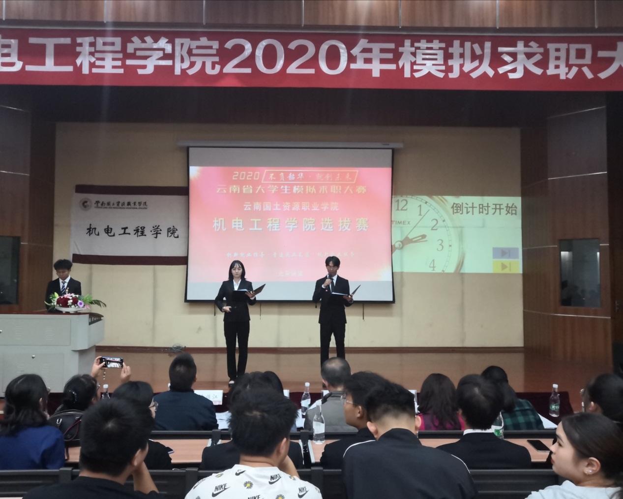 为增强员工的就业创业能力,提高员工就业创业热情,加大就业服务工作力度,创新就业服务指导模式。同时引导员工了解用人单位需求、合理进行职业规划,太阳成集团tyc7111cc于2020年10月27日晚6:30在光荣讲堂举办2020年大员工模拟求职大赛。出席本次大赛的有云南建投第十一建设有限公司人力资源部部长沈顺江老师、昆明南疆制药有限公司人力资源部部长魏玲老师、昆明南疆制药有限公司人力资源部招聘主管田丽华老师、云南国土资源职业学院就业与校企合作处处长董云老师、太阳成集团tyc7111cc党总支书记王春莲老师、太阳成集团tyc7111cc副院长张俊妍老师、建设工程学院团总支书记张宁老师、太阳成集团tyc7111cc团总支书记陈立老师,太阳成集团tyc7111cc辅导员谢亚男老师及19级、20级员工代表。