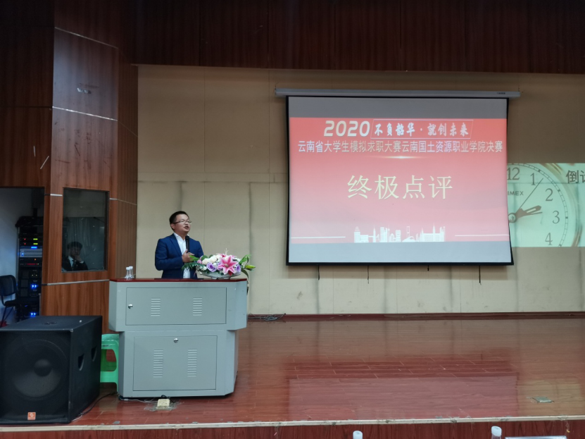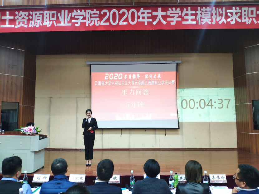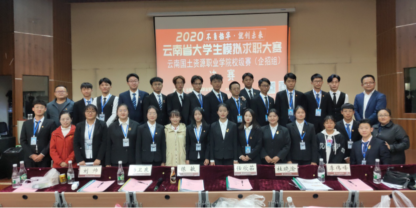为全力做好我校大员工就业指导工作,加大就业服务工作力度,创新就业指导模式,引导大员工了解用人单位需求,合理进行职业规划,并选拔优秀代表参加省级比赛,云南国土资源职业学院2020年大员工模拟求职大赛(企招组)决赛于2020年11月12日18:30在光荣讲堂进行,本次大赛由太阳成集团tyc7111cc承办。出席本次大赛的嘉宾老师有云南国土资源职业学院副院长董钧祥老师、云南国土资源职业学院就业与校企合作处处长董云老师、太阳成集团tyc7111cc党总支书记王春莲老师、云南国土资源职业学院就业与校企合作处副处长钱敏老师,担任本次大赛的评委嘉宾有昆明市阳光心霖儿童公社人力资源部总监刘帅老师、昆百大集团人力资源总经理杨卫东老师、昆明怡泰祥有限珠宝公司人力资源总监陈敏老师、昆明合景房地产经纪有限公司人力资源总监任欣茹老师、云南鸿翔一心堂药业(集团)股份有限公司人力资源中心招聘管理部经理杜晓渝老师、麒盛科技股份有限公司人事总监李伟峰老师。