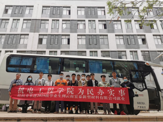 为降低员工自行前往就业企业的疫情风险,助推2019级部分应届毕业生顺利就业,学院第一时间联系相关部门,统筹安排大巴将学院14名员工点对点送到文山州宏泰新型材料有限公司。上午9点,学院领导和相关员工亲自前往现场为员工送行,党总支书记王春莲、院长张俊妍鼓励大家在企业安心就业,扎扎实实干工作,踏踏实实干实事,秉承学院的“三光荣”精神,在岗位上实现自己的人生价值。