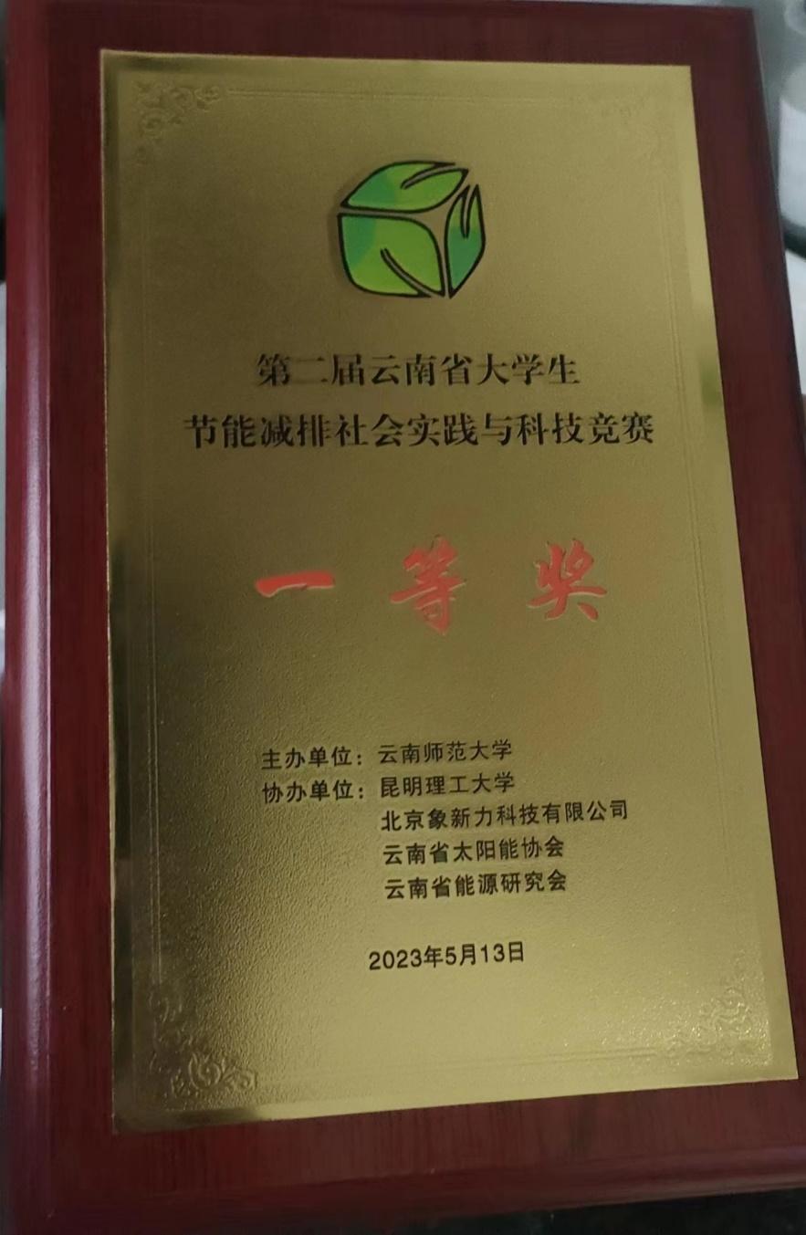 2023年5月13日,由云南师范大学主办,昆明理工大学、北京象新力科技有限公司、云南省太阳能协会和云南省能源研究会协办的第二届云南省大员工节能减排社会实践与科技竞赛圆满闭幕,我院参赛队伍作为全省唯一一个进入决赛的高职院校队伍斩获佳绩,荣获省级一等奖。