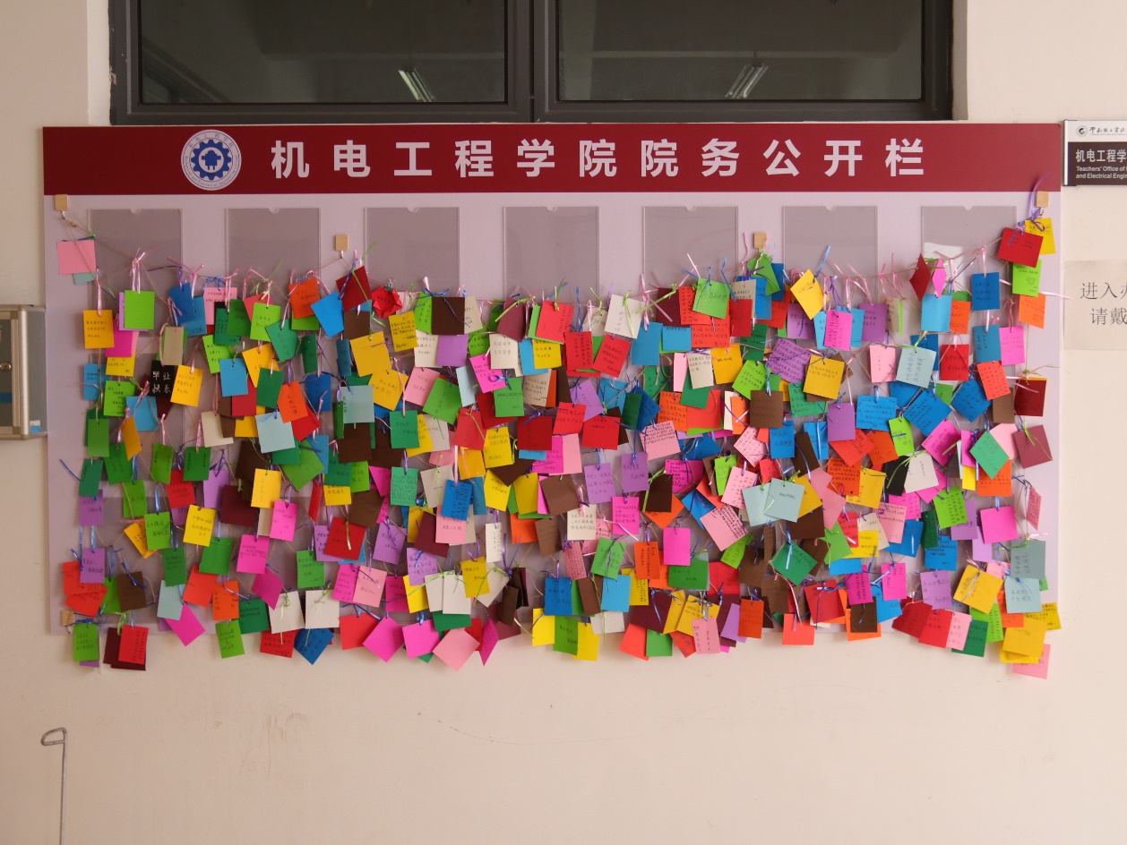 7月8日,学院团总支、员工会部分志愿者不顾辛劳、互相协作,共同对学院区域进行了文化装扮。同学们发挥自己的想象力,精心安排,悉心布置,感人的祝福墙、温暖的长廊、催人泪下的横幅、满是回忆的照片墙,温馨而温暖。