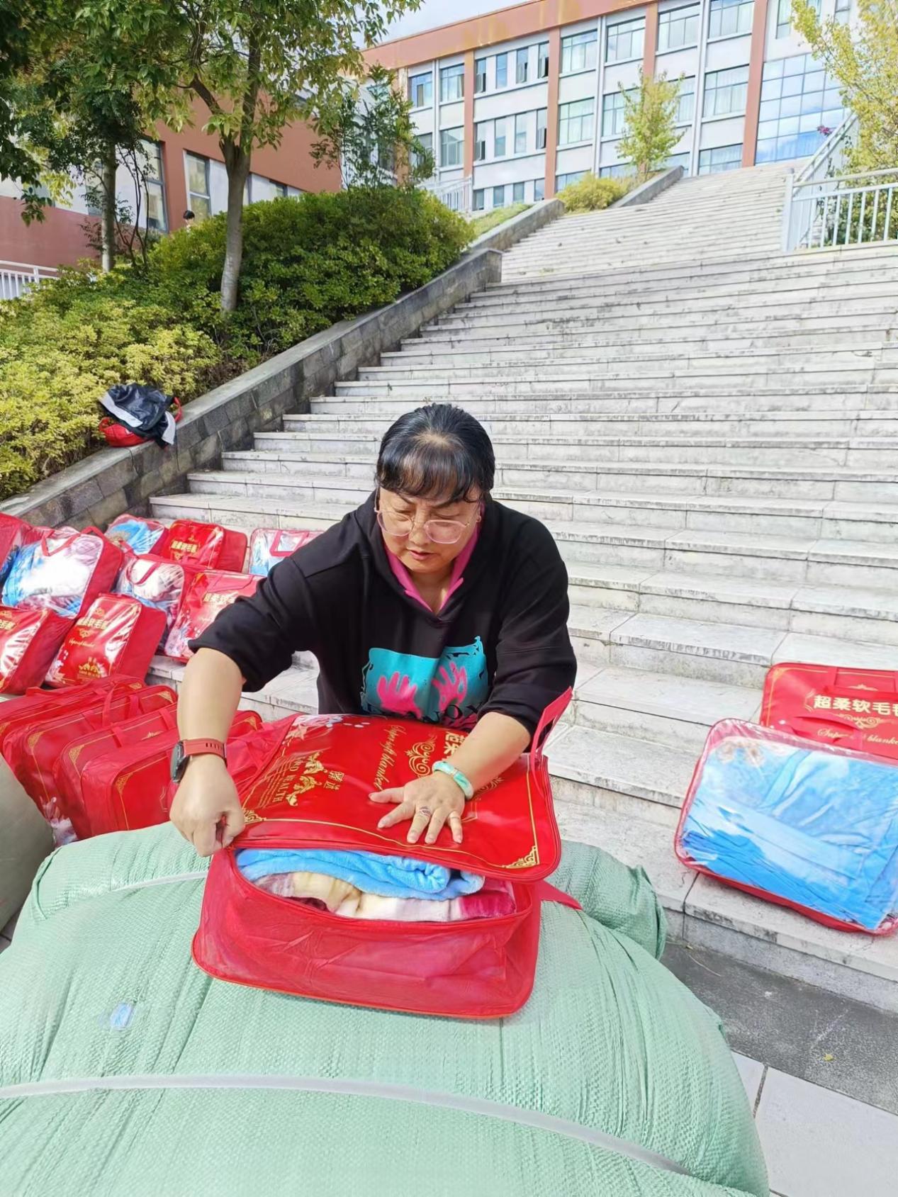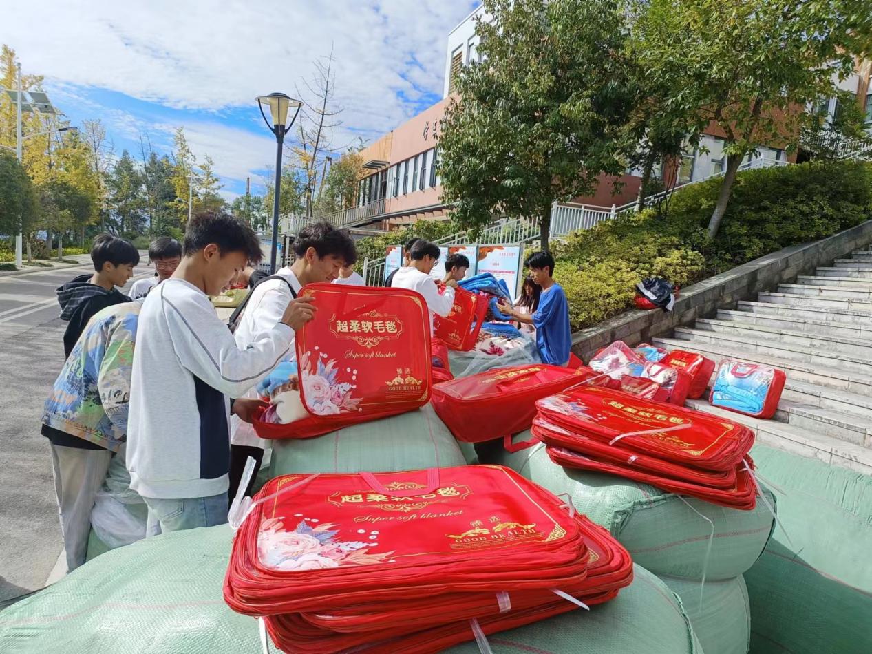 物资发放现场,学院党总支书记王春莲带头整理、核对物资,亲手将一条条毛毯递到受助员工手上,并热心了解受助员工的学习、生活情况。她鼓励所有受助员工要保持积极乐观的生活态度,珍惜大学时光,有困难第一时间向学院反映,学院定会积极帮助大家解决问题。