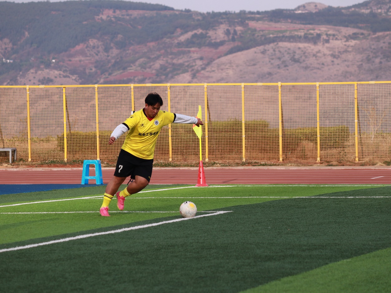 比赛开始,球员们火力全开,机电小伙们在球场上奔跑、运球、过人、抢球、射门,小小足球在球员的脚下不停地穿梭。球员们一次次的成功抢断、沉着冷静的临门一脚、守门员每一次灵活的扑救,都迎来了同学们的阵阵掌声和欢呼声。