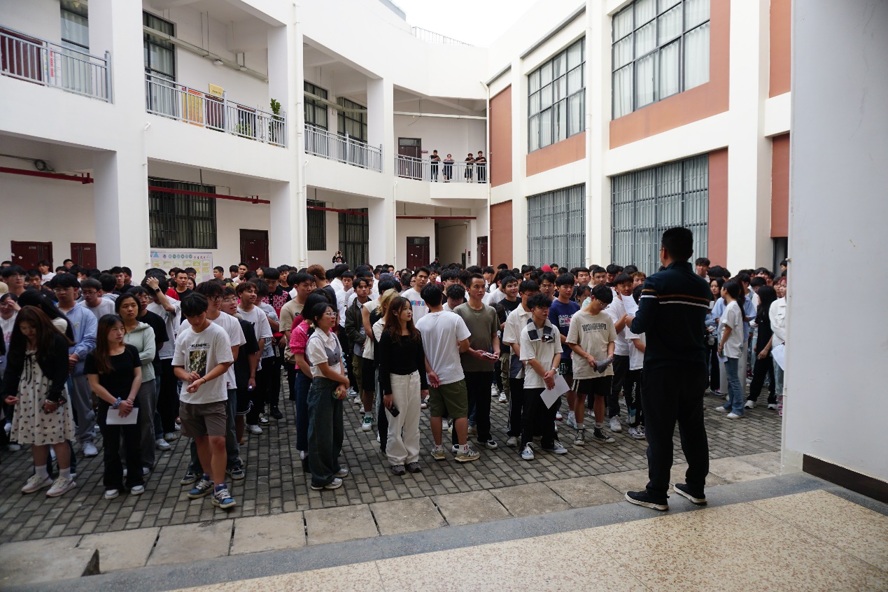 同学们有序疏散到了空旷的停车场,然后整齐集合,王亚文老师为对此次消防安全疏散应急演练做总结,并讲解如何提高消防安全以及应对火灾时的措施和心态。大家一起喊出消防安全的口号:“火源管理,严密控制,校园安全,人人有责。”