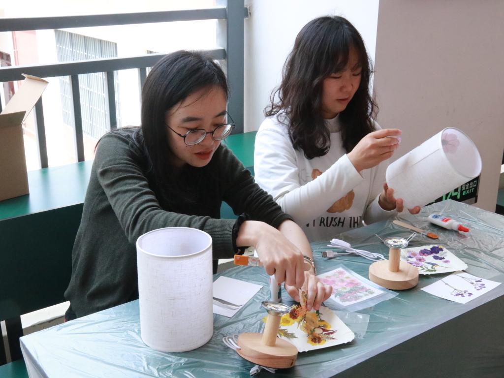 活动开始前,花艺台灯指导老师为参与活动的各位老师详细讲解了花艺台灯的制作步骤及注意事项,确保了活动的顺利进行。活动中,各位老师提笔亲手将自己最喜欢的诗句题写在台灯上,并将干花装饰材料进行自由搭配,并粘贴在台灯上。老师们在制作过程中不仅感受到了艺术创作时的宁静与放松,还通过相互帮助拉近了同事之间距离,提高了团队协作能力。她们创作出来的花艺台灯,更是从清新自然到花团锦簇,从“循规蹈矩”到“随意泼洒”,无一不体现了老师们的个性和创意。