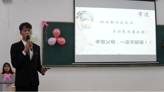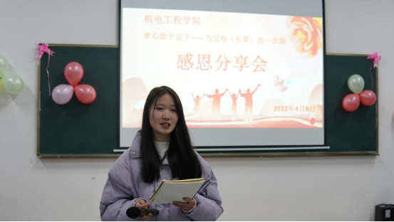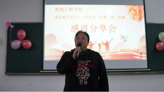 活动伊始,学院党总支书记王春莲老师为本次活动致辞。她指出感恩父母长辈是我们的传统美德。作为当代大员工,培养优良的道德品质,知恩、感恩是我们的必修课,希望在此次分享交流会中,同学们能真情流露,感悟感恩,做一个有孝心、有担当、知感恩的人。