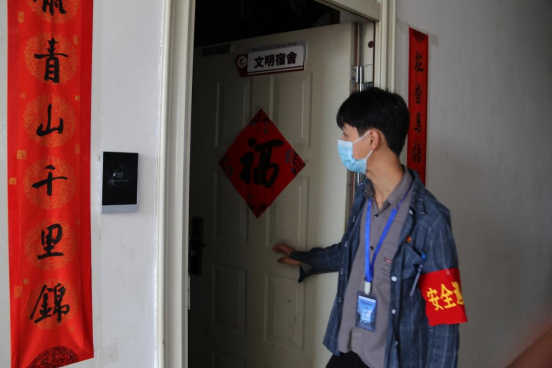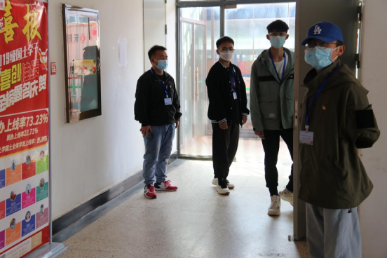 为保障师生的身心健康,保障正常的教学秩序,学院严格落实学校疫情防控工作要求,积极应对疫情发展形势,及时开展疫情防控专项工作会,辅导员在疫情期间与员工同吃同住,结合实际情况开展主题班会、走访宿舍,对员工进行心理疏导,筑牢疫情防控安全线。抗疫期间,全体辅导员和员工志愿者们每一个维持秩序的瞬间,每一声“戴口罩”的叮嘱,每一次的扫码登记,无一不倾注着对学院师生的爱,对国土的爱。