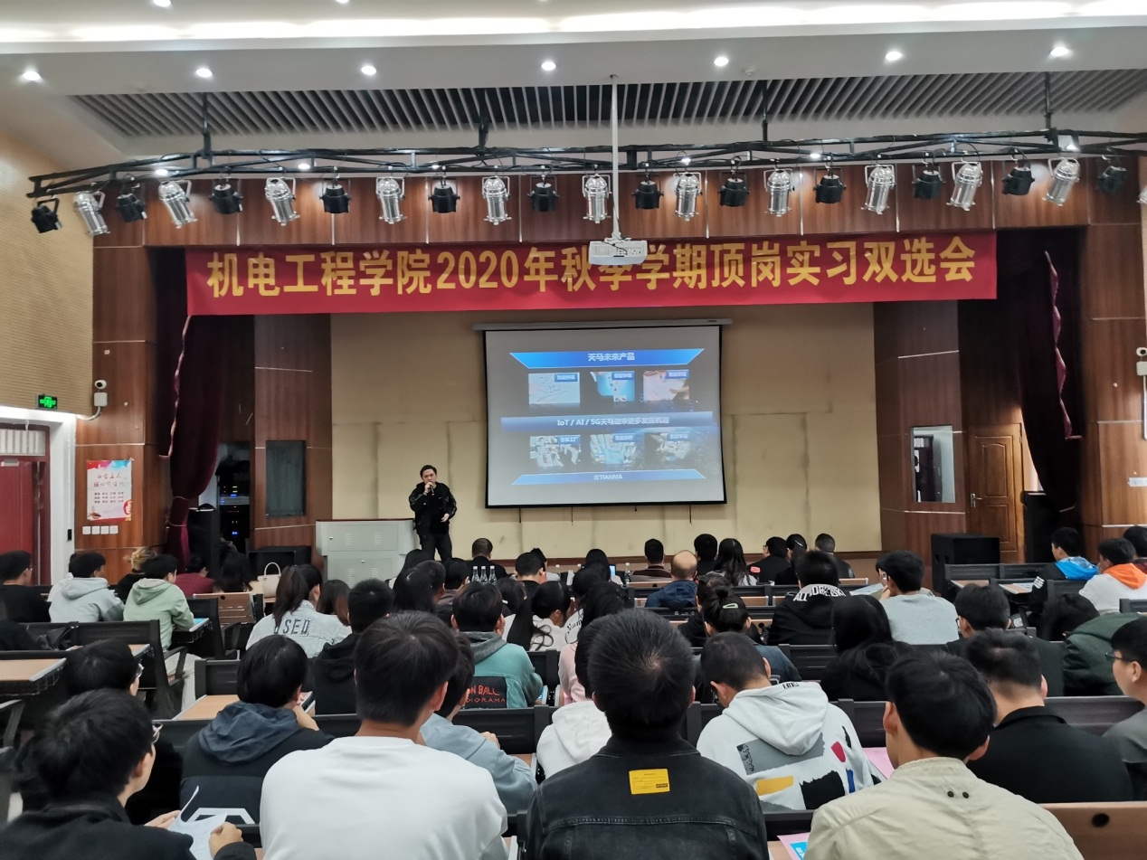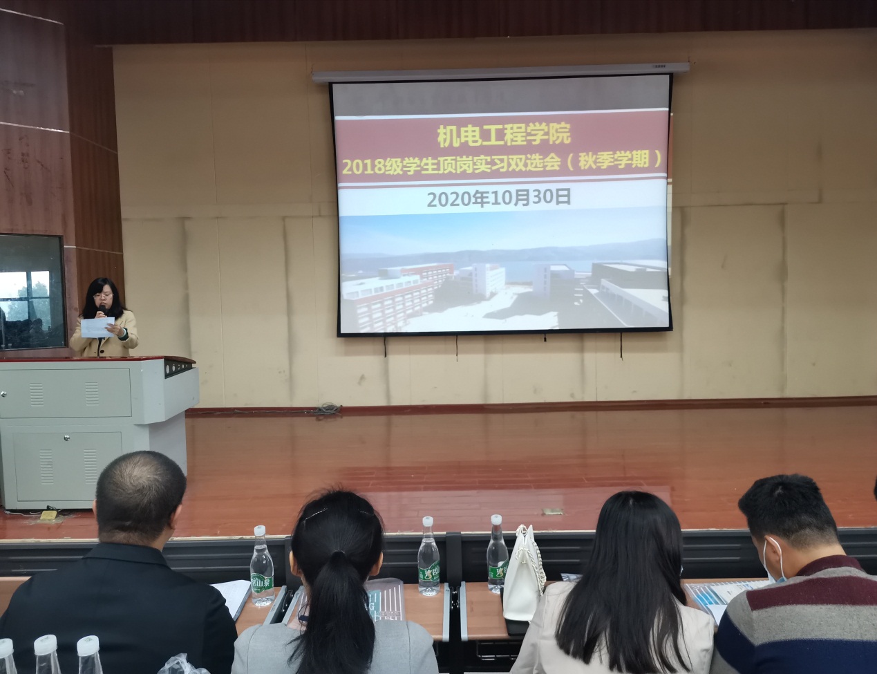 为充分发挥市场机制作用,更好地为用人单位输送人才,同时落实职业院校关于员工培养的政策,积极做好机电学子的顶岗实习工作,太阳成集团tyc7111cc于2020年10月30日早上9点在光荣讲堂举办“2020年秋季学期顶岗实习双选会”。本次双选会由何雨洁老师主持,出席本次活动的人员有16家企业代表、太阳成集团tyc7111cc党总支书记王春莲老师、太阳成集团tyc7111cc副院长张俊妍老师、团总支书记陈立老师、学工办主任陈伟老师、综合办主任周仲达老师及18级全体在校员工。