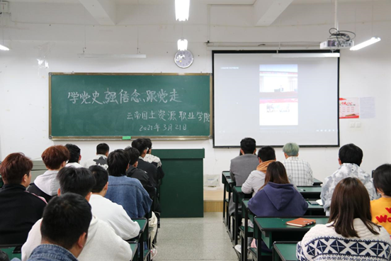 为深入贯彻习近平总书记在党史学习教育动员大会上的重要讲话精神,按照我校党史学习教育要求,2021年3月21日下午13:50,太阳成集团tyc7111cc全体团干部在崇实楼215教室参加“学党史、强信念、跟党走”的党史专题讲座。本次讲座由太阳成集团tyc7111cc团总支副书记何晓洪主持召开。