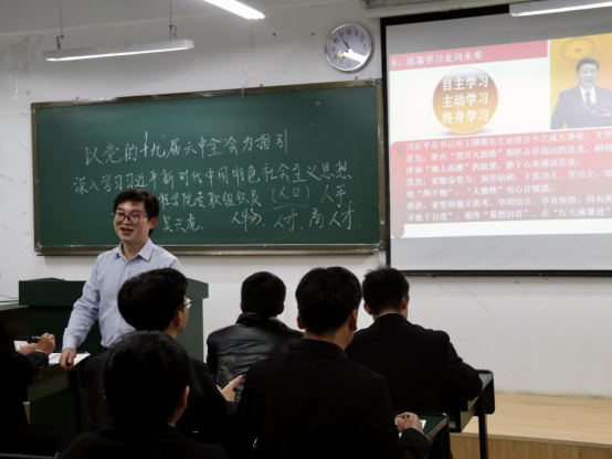 首先,吴兴虎老师以修业问道引出“明心见性,开悟觉醒”的观点,启发学员们深入思考。接下来,吴老师从“党的十九大确立习近平新时代中国特色社会主义思想为党的指导思想”、“习近平新时代中国特色社会主义思想实现了马克思主义中国化新的飞跃”、“习近平新时代中国特色社会主义思想的理论特色和历史贡献”、“习近平新时代中国特色社会主义思想的主要内容”、“深入学习贯彻习近平新时代中国特色社会主义思想”、“掌握马克思主义思想方法和工作方法”这六个方面深入浅出的讲解。他强调,为中国人民谋幸福、为中华民族谋复兴、为世界谋大同是习近平新时代中国特色社会主义思想的金钥匙。最后,他向同学们提出了四点建议:一是实事求是,讲真话、做真事会让自己面对困难时很从容,所有难题将会迎刃而解;二是发现自我、成就自我、超越自我,实现认知上的超越,不断升华自己的思想;三是坚持问题导向,针对性寻找方法解决问题;四是学会自主学习,多读书,让自己的大员工丰富多彩,实现人生价值。