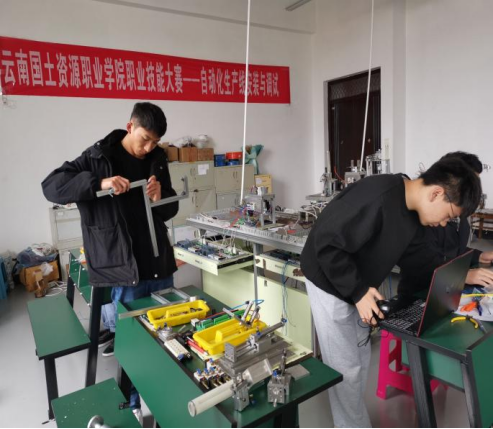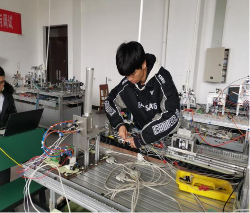 此次职业技能大赛分为程序设计和装配、接线两组。竞赛内容为程序组选手根据赛场提供的有关资料和工作任务书完成程序设计;装配、接线组选手完成组装设备部件和接线。比赛过程中虽然天气很冷,但也挡不住同学们的比赛热情,在紧张的比赛氛围下,经过三个小时的激烈角逐,选手们纷纷取得佳绩,比赛名次如下:程序设计组第一名冯福友、第二名沈怡瑶、第三名周云飞;装配、接线组:第一名刘旭、第二名侯荣光、第三名于玥。