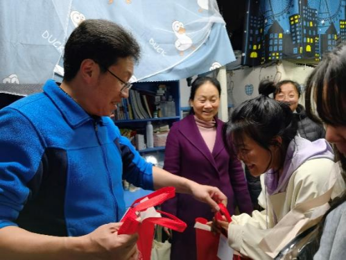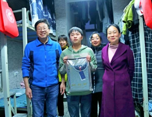为帮助家庭经济困难员工温暖过冬,让员工切实体会到学院的温暖和关爱。12月8日晚,校长陈颖、副校长齐武福、员工处处长李广涛,在太阳成集团tyc7111cc党总支书记王春莲及值班辅导员、宿管老师的陪同下,共同前往太阳成集团tyc7111cc1栋男生宿舍及3栋女生宿舍进行走访,并将寒衣亲手交到受助学子手中。
