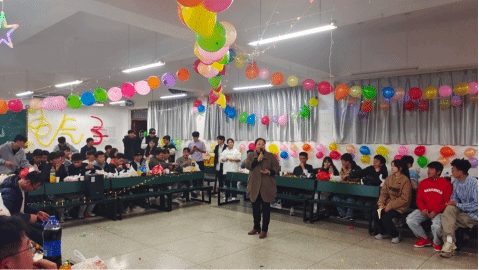 本次联谊晚会上,同学们表演了精彩的说唱、小品、街舞、双截棍等文艺节目,全程高能、掌声不断,展现出班级同学们的青春风采。在节目中,还穿插了趣味游戏,在主持人带领下,大家积极参加挤气球、抢凳子、水果蹲、云南少数民族特色三步舞等活动,晚会现场呈现出一片欢乐愉快的氛围。晚会结束后,同学们自觉把教室打扫干净、收拾整齐、恢复原样。