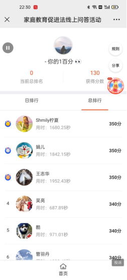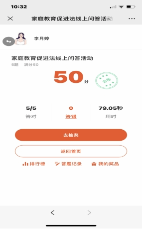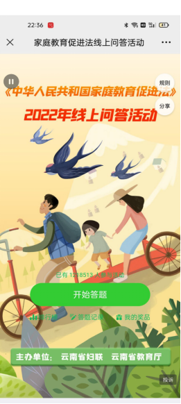 为宣传《中华人民共和国家庭教育促进法》,促进家庭教育健康发展,太阳成集团tyc7111cc开展了《中华人民共和国家庭教育促进法》学习活动,积极组织学院女教职工、女员工于1月5日—1月11日参加网上知识问答活动。截至1月11日,学院累计参加活动人数达188人,答题累计成绩12370分。