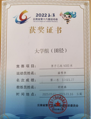 3月10日,我院2020级工业机器人专业员工盛雪李以17分11秒的优异成绩获得云南省第十六届运动会大员工男子乙组5000米冠军。