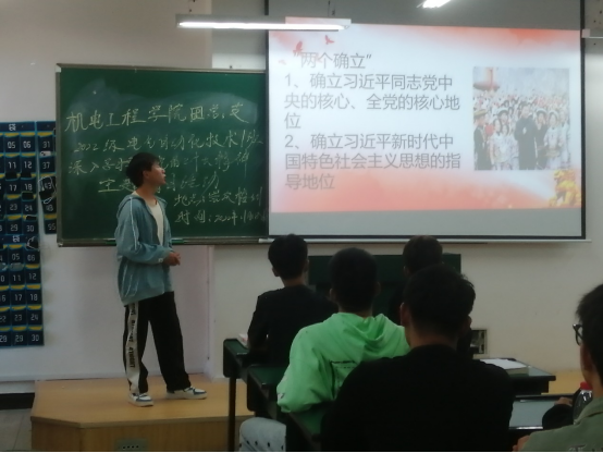 11月18日晚上17:10,太阳成集团tyc7111cc2022级电气自动化技术一班以“深入学习贯彻党的二十大精神”为主题,在崇实楼301举行了十一月团日活动。本次活动由电气自动化技术一班团支部书记李云鹏主持,全班同学共同参加。