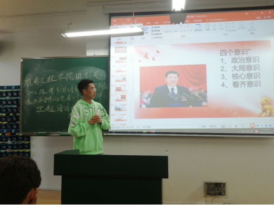 随后,全体同学以ppt讲解的方式一起学习了二十大报告中的学习要点。团支部书记李云鹏和大家分享了作为新时代青年的所想、所思、所悟。他指出,马克思曾说过“一个时代的精神是青年代表的精神,一个时代的性格是青春代表的性格。”,这句话说明只有青年强,国家才会强,这个时代才会熠熠生辉。因此新时代青年的我们要深刻领悟“两个确立”,增强“四个意识”,坚定“四个自信”,坚决做到“两个维护”,坚定不移听党话、跟党走;要肩挑时代重任,心存时代使命,练就过硬本领,锤炼高尚品德,勇于担当、砥砺前行,为实现中华民族伟大复兴贡献青春力量。