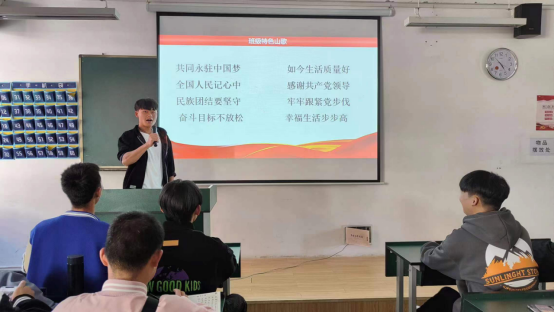 最后,班级同学张正演唱了自创山歌《青春心向党》,表达了自己坚定不移跟党走、矢志不渝听党话的决心,坚定了大家与时俱进、勤学追梦的信心。