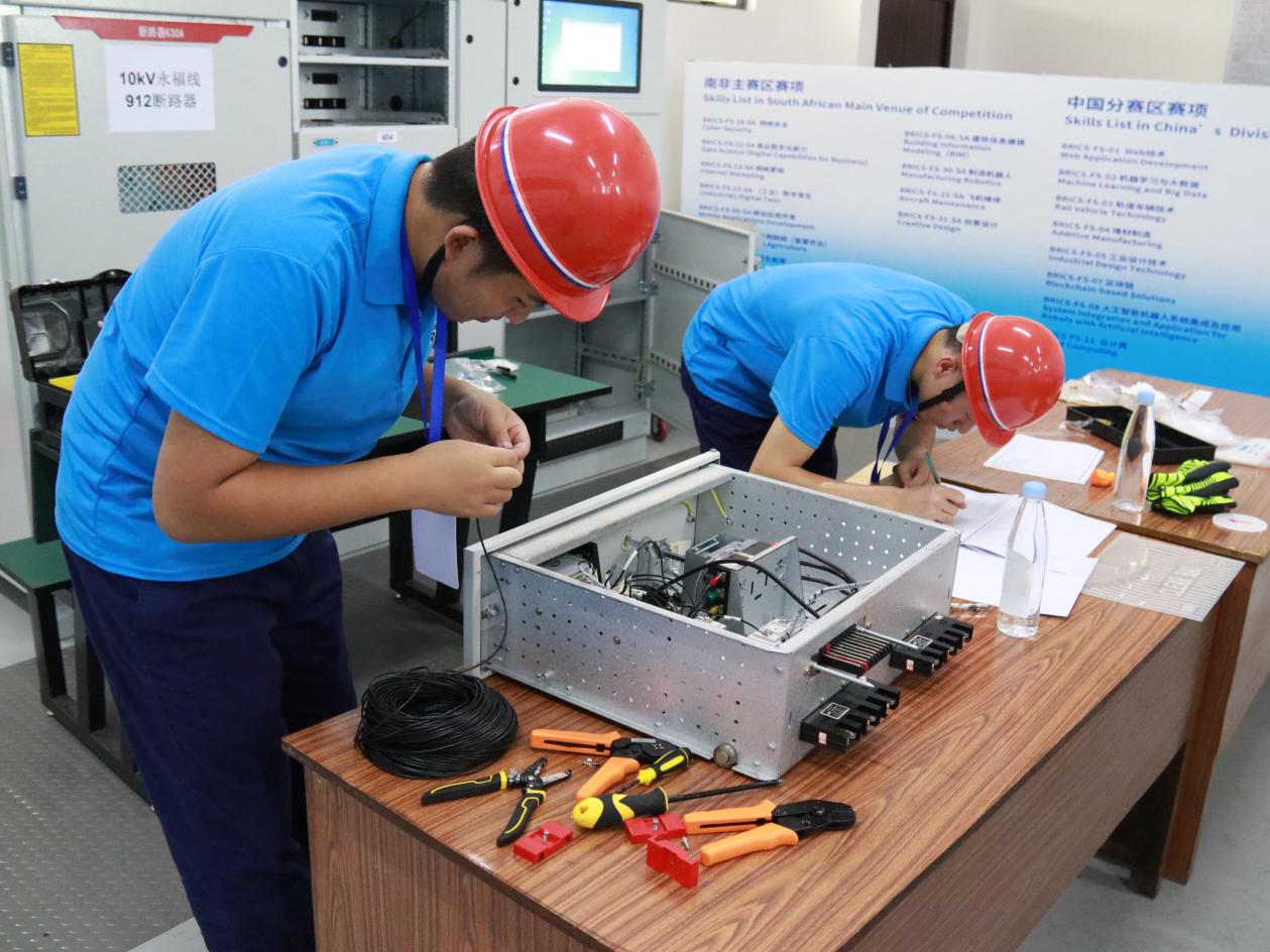 8月26日至27日,由南非高等教育与培训部、金砖国家工商理事会、南非豪登省政府主办的2023金砖国家职业技能大赛智能供配电技术赛项(云南)区域选拔赛在云南国土资源职业学院举办。云南国土资源职业学院教务处处长郑毅、西安亚成智能科技有限公司副总经理晁炳杰、太阳成集团tyc7111cc院长张俊妍、太阳成集团tyc7111cc副院长陈伟、大赛裁判、仲裁人员及各参赛院校老师和参赛选手等出席开幕式。