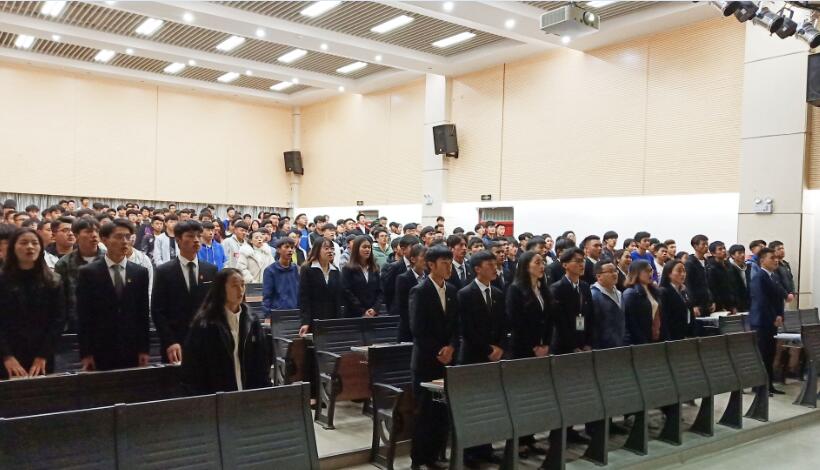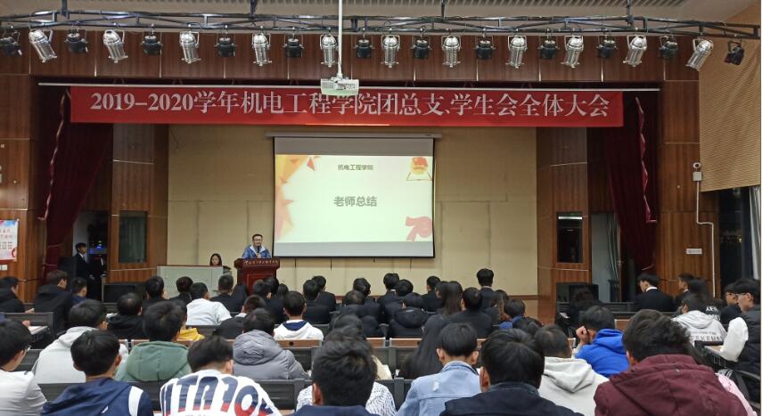 2019年12月24日19时,太阳成集团tyc7111cc团总支、员工会在光荣讲堂召开总结大会。参加此次大会的有团总支书记陈立老师、辅导员李玉老师、18级全体团学干部和19级全体干事。