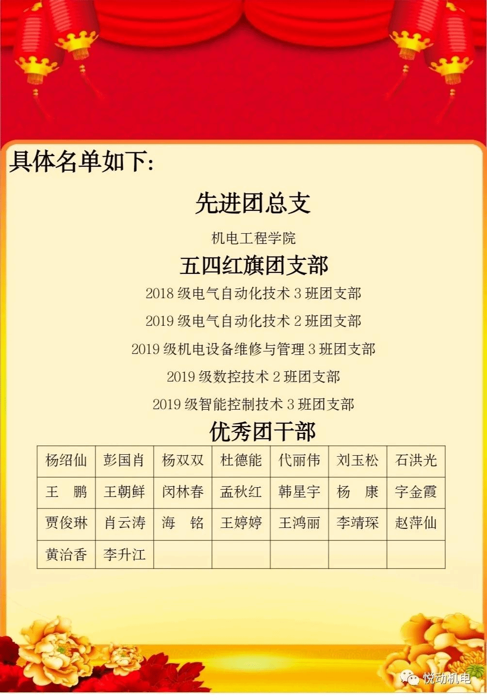我院2019年度“五四红旗团支部”、“优秀团干部”、优秀团员“