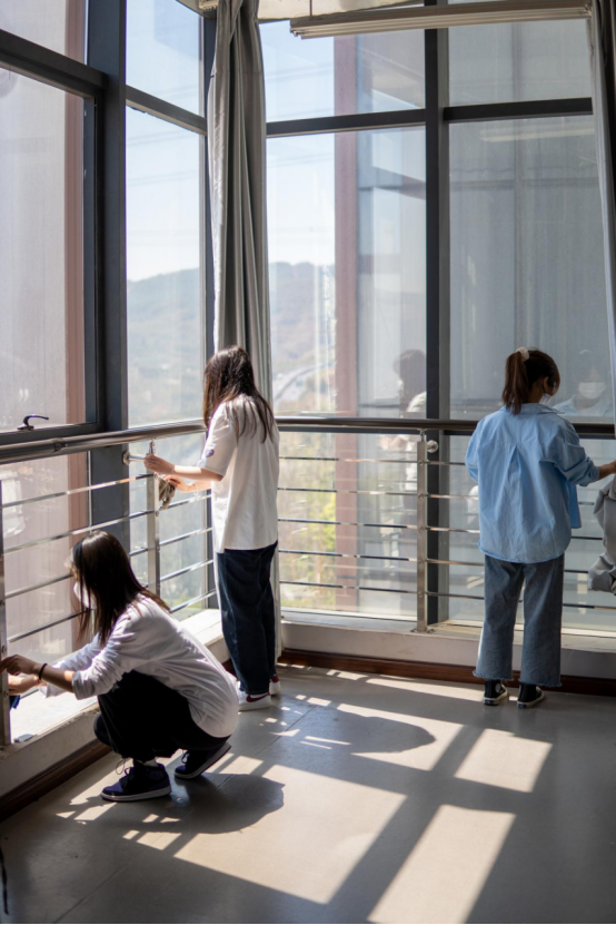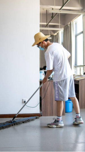 活动开始,由团总支副书记王正当对志愿活动做出详细安排,员工干部刘师安、蒋枘兵、李维接、王正当、曹文涛分别带领各部门志愿者们对学校图书馆各个楼层进行打扫。在活动过程中,为了给大家营造安静的学习环境,志愿者们在打扫过程中尽量保持安静,不影响其他同学学习。大家分工明确、积极参与、认真细致,有的拖地、擦玻璃,有的整理书架,摆放桌椅,所有成员各司其职,紧密配合,各项工作有条不紊地有序进行。本次志愿活动取得圆满成功,并得到了学校师生的一致好评。活动结束后,志愿者们在图书馆门前合影留念。