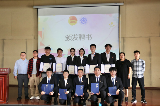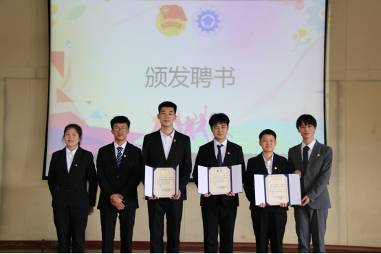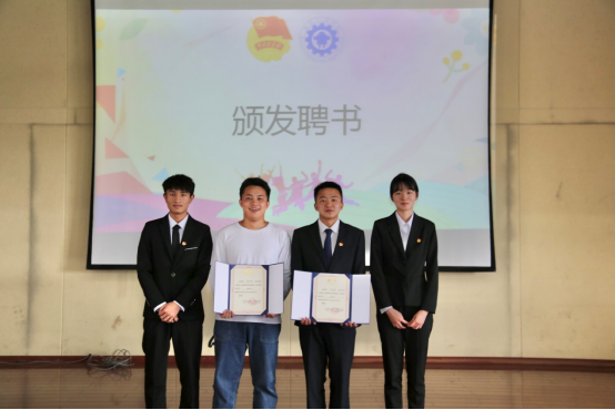 第三项议程:颁发聘书。2021级预备干部为2020级员工干部颁发聘书,王春莲老师、陈伟老师、陈立老师和全伟东老师为班级助理颁发聘书。