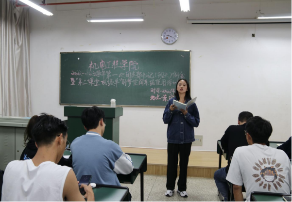本次会议主要分为两部分。第一部分,由团总支副书记李玉花对近期工作作了详细总结,并对9月份的团日活动进行了安排部署。她指出本月的学习内容为习近平同志《论党的青年工作》和从严治团相关文件,她希望各班团支书主动创新团日活动形式,不断搭建理论学习线上线下平台,不断扩大团日活动影响力,积极发挥先锋模范作用,用实际行动引领班级同学树立远大理想,认真学习专业知识,争做时代新青年。