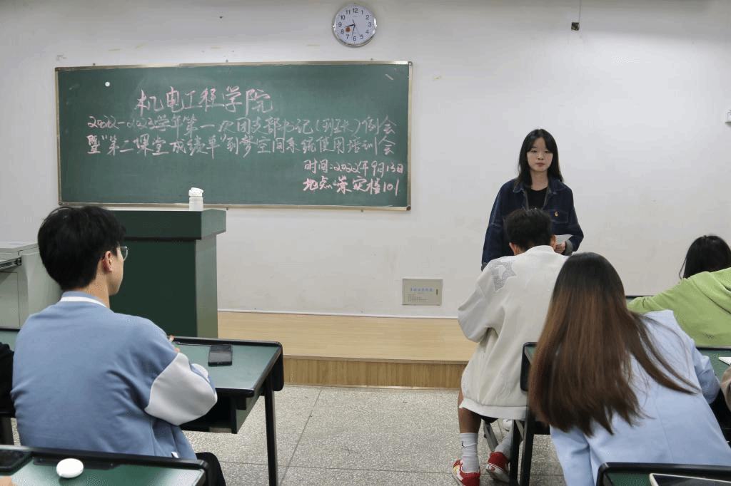 第二部分,由员工会学习实践部部长杨露对“第二课堂”相关文件进行解读,并对“第二课堂成绩单”到梦空间系统的使用方式进行了讲解。她希望2022级所有干部要认真学习,学懂弄通,主动帮助班级同学解决到梦空间系统的激活和使用问题,让“第二课堂”落实落细。