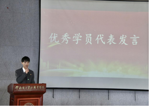 新学员代表巴琦翠对学院给予的青马班学习机会表示衷心感谢,并代表全体新学员表态,将会坚定理想信念,努力学习,积极进取,学真知识、练真本领,努力成长为能当大任的新时代青年。将会以身作则,在学习和工作中积极发挥先锋模范带头作用,努力成长为优秀的员工骨干,成长为一名坚定的青年马克思主义者。