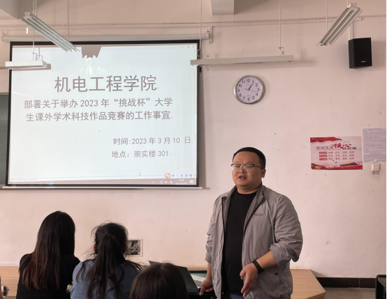 第三环节是对即将开展的“挑战杯”和“互联网+”创新创业大赛做动员工作。首先,主席团成员何大一同学对两项赛事的报名方式、作品内容等进行了介绍。随后,辅导员张洪梅老师进行了参赛动员,她希望全体团干部要在班级内主动宣传大赛、主动组队参加大赛,在大赛中提升自己、锻炼自己、成就自己。最后,学院团总支负责人陈立老师介绍了大赛的含金量和以往我院获得的优异成绩,并希望各团支部积极踊跃参加大赛,拿出好的作品参赛,再创佳绩。