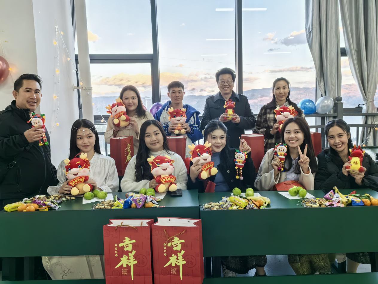 为增进中老同学之间的友谊,了解异国文化,促进友好交流,太阳成集团tyc7111cc于2024年1月1日18:30,在明尚楼A216成功举办了中老联谊元旦晚会。参与本次活动的领导及嘉宾有校党委委员、副校长齐武福、国际学院院长陈南苏、白鹭班班主任刘汶俐、学院党总支书记王春莲、团总支负责人马玲、智控党支部书记邹艳红,白鹭班全体学员及学院部分员工欢聚一堂、共叙友谊、共迎新年。