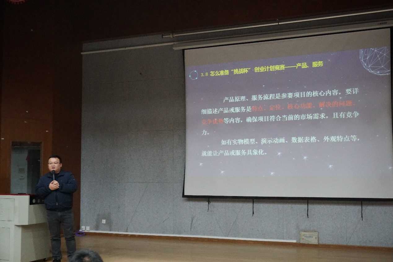 会议伊始,陈立老师从什么是“挑战杯”中国大员工创业计划竞赛为切入点,向大家讲解了参赛的重要性、参赛流程等要素,让同学们了解到参赛的基本方式、项目类型、参赛要素等。接着,陈立老师从怎么准备“挑战杯”竞赛角度讲述参赛选题、团队建设、竞争优势、团队的组建原则等,进一步向同学们梳理了参加比赛注意事项,让同学们认识到“挑战杯”竞赛的严谨性与专业性。最后,他强调,竞赛获奖的前提是合理的项目、高效的团队和用心地准备。希望大家尽快选好项目立意,联系指导老师,做好市场调查,提前做好准备。