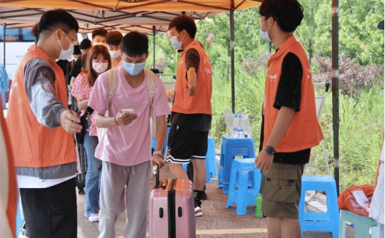 8月25日、26日,学院全体辅导员和志愿者们一直坚守阵地,他们分工明确、各司其职,有的负责行李消毒,有的负责测量体温,有的负责核验健康码、行程码和核酸情况,有的负责入校扫码;他们严格执行疫情防控各项要求,认真核准师生返校条件,实时关注师生返校动态;从日出到日暮,学院全体参加返校工作的师生热情服务,耐心引导,不仅确保了广大师生安全返校,还让返校师生感受到了“回家”般的温暖。