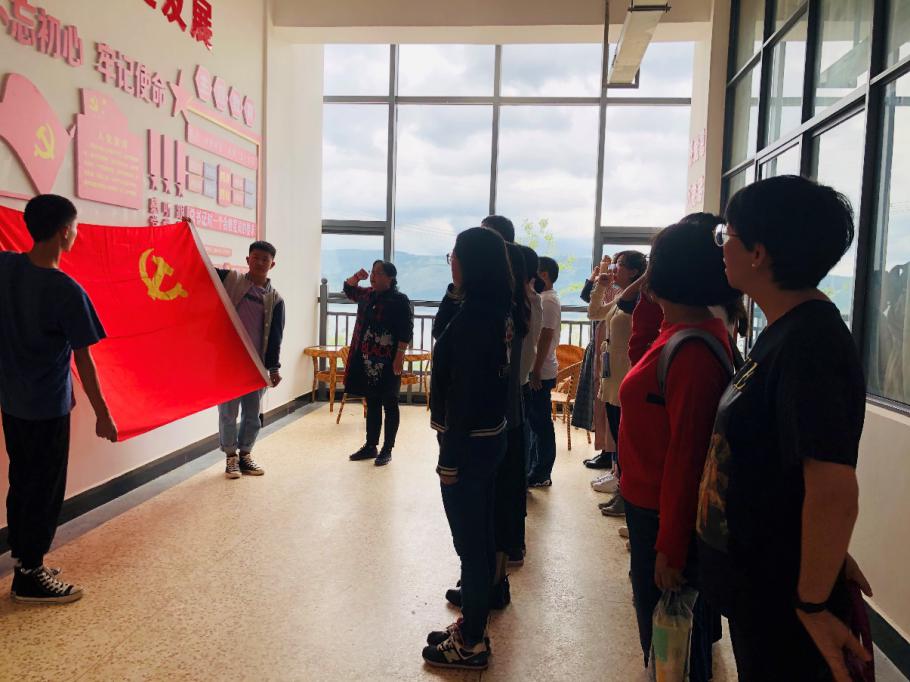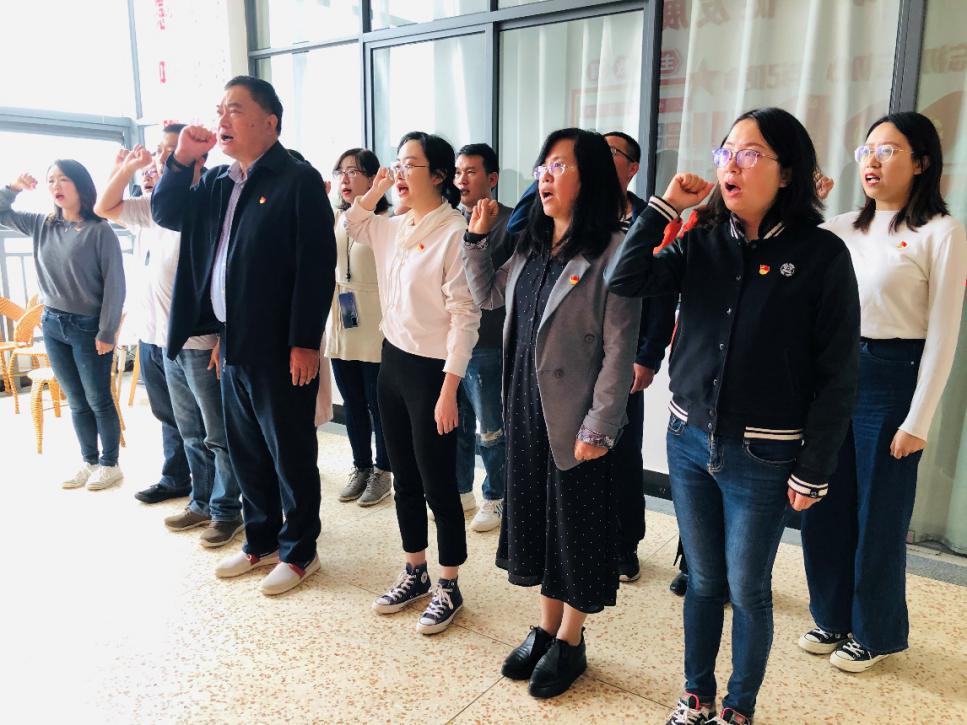 全体党员重温入党誓词。面对鲜红的党旗,党员同志们庄严地举起右手,握拳成锤,再次表达为共产主义奋斗终身、随时准备为党和人民牺牲一切、永不叛党的决心和意志。