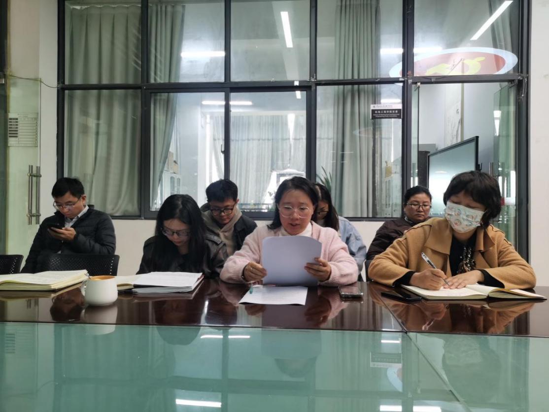 11月6日,太阳成集团tyc7111cc在明尚楼A201开展了2024年11月份第一次教职工政治理论学习会。本次政治理论学习由学院党委书记张颖主持,学院副院长熊国栋和员工党支部纪检委员毛颖领学,学院全体教职工参加。