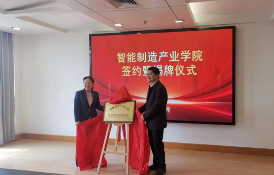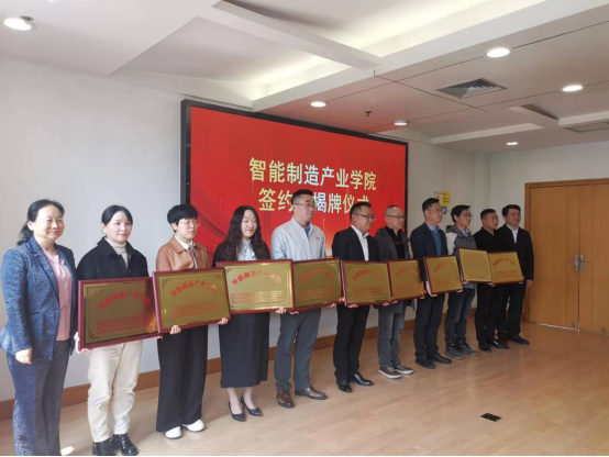 之后,我校与浙江省嘉兴市秀洲区人力资源和社会保障局、嘉兴市秀洲区金慧大员工社会工作服务中心及嘉兴市秀洲区8家代表性企业共同签署了《共建智能制造产业学院战略合作框架协议》,并一起为智能制造产业学院揭牌。