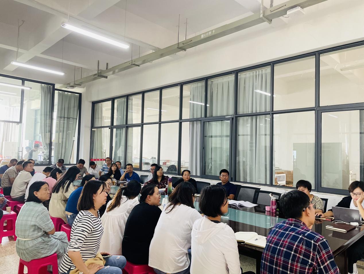 交流会上,吴兴虎老师以工作日志的形式向与会教职工介绍了本次驻厂工作的地点、方式、内容等基本情况。他认为,制造业前途宽广,员工实习条件和工资待遇有保障,大部分同学能够胜任实习工作,对实习企业的生活环境、薪资待遇较为满意;少部分同学对制造业现状的认识不深,无法承受产线工作的体力消耗和两班倒的辛苦;极少数同学环境适应能力和人际关系处理能力较弱,不能有效解决实习工作中遇到的困难和问题。